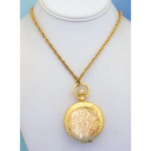 32 inch, Vintage Victorian Monogram Pendant Gold Tone Necklace by Estee Lauder