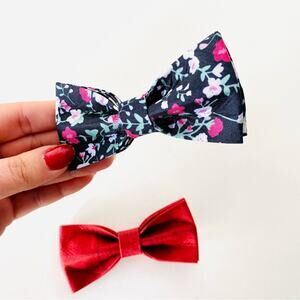 3/$20 2 NEW HANDMADE Navy Blue Floral Red Plaid Dog Cat Collar Elastic Bow Tie