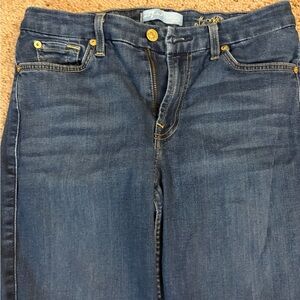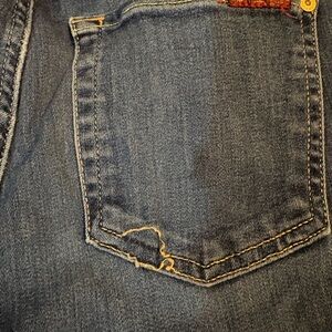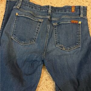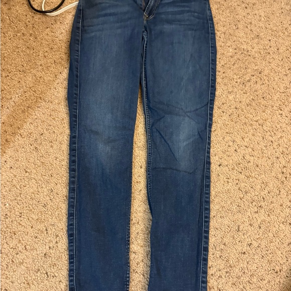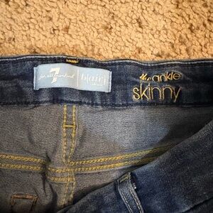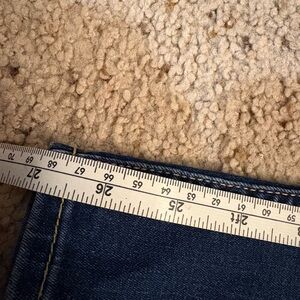 Stylish dark blue skinny jeans. Perfect fit and versatile design. Ideal for casual wear. Stitching coming off of back pocket. See pictured.