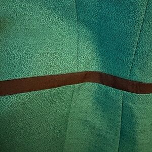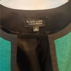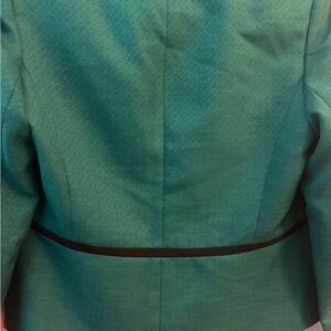Chic Evan Picone blazer in vibrant teal. Features sleek black trim. Perfect for professional and casual settings.