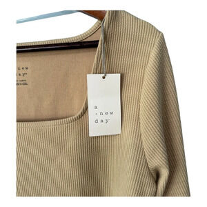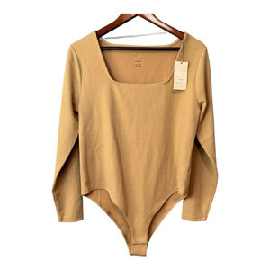 ✨3/$20✨ A New Day Tan Ribbed Long Sleeve Square Neck Bodysuit. NWT. Size XXL