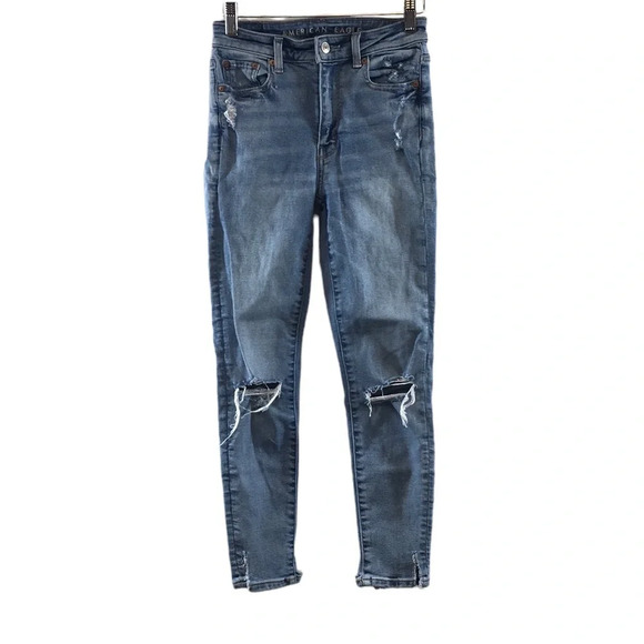 3/$20 American Eagle Super Hi-Rise Jegging Womens 0 Short Light Distressed Jeans