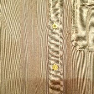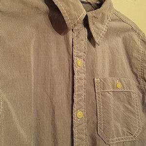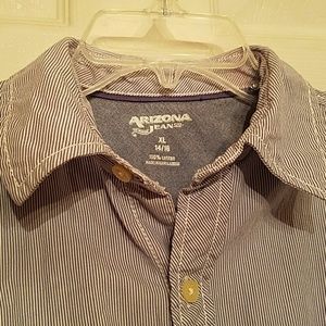 Thin blue and white pin striped Arizona button down shirt with front button chest pocket in like new condition 14/16