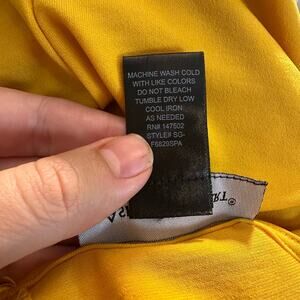 Very cute blouse in a rich yellow color. Features a removeable belt and ruched sleeves.