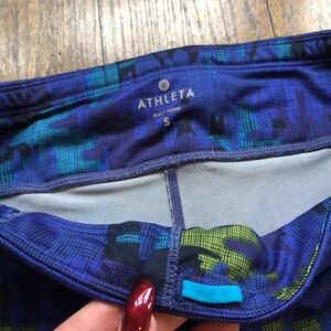 These stylish Athleta leggings feature a vibrant blue pattern, perfect for active days.