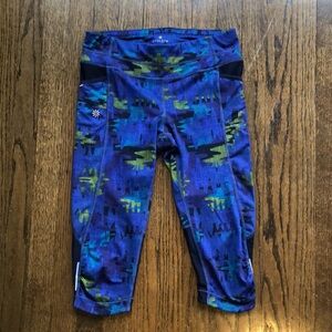 3/$20 Athleta Neon Patterned Mesh Panel Stretch High-Rise Capri Leggings