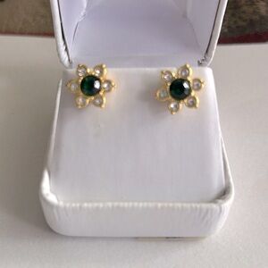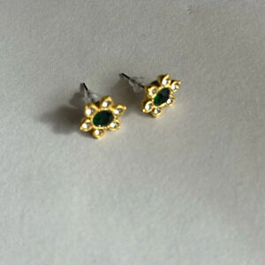 3/$20 Beautiful Dark Green Emerald Color Gold Tone Flower Floral Stud Earrings