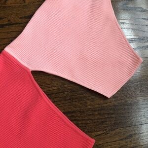 3/$20 Bershka Ribbed Stretch Color Block One-Shoulder Cut-Out Bodycon Mini Dress