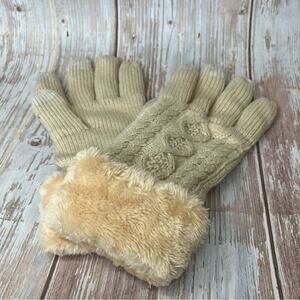 NEW Cable Knit Fleece Lined 3 Finger Touchscreen Winter Gloves in Color: Latte