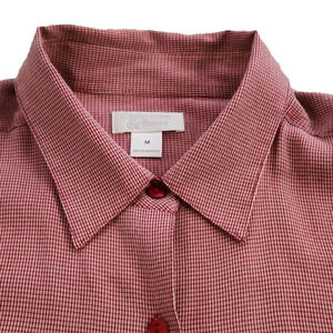 Red and white shepherd's check Christopher & Banks long sleeve casual button-down shirt. Size Medium. 58% Rayon, 42% Polyester. In excellent condition.