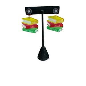 Brighten up your day with these colorful stack of books earrings. Featuring vibrant red, yellow, and green colors, they are perfect for book lovers and teachers alike.