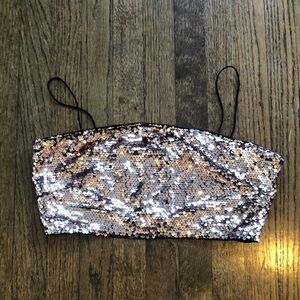 Shimmering sequin tube top with thin straps. Perfect for a night out.