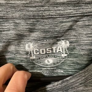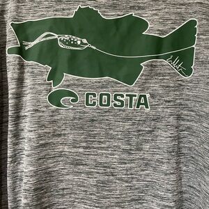 Costa long sleeve tee in heather gray. Features a bold green bass logo on the back. Ideal for casual wear.