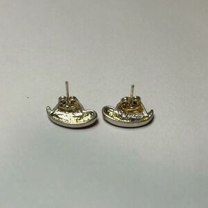 3/$20 Cute Red Cowboy Hat Rhinestone Gold Plated Stud Earrings Country Vintage