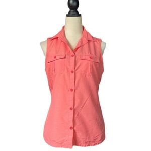 3$/20 Eastern Mountain Sports Peachy Pink Button Down Collared Nylon Top (Med)