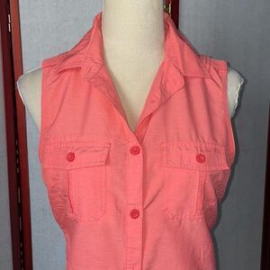 Peachy pink colored button down sleeveless nylon top with collar and mesh fabric on the back of the neck. Like new condition.