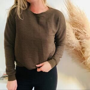 FOREVER 21 F21 Olive Brown Ribbed Crew Neck Pullover Chunky Knit Sweater M
