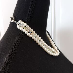 (3/$20) Faux Pearl 3 strand silver tone necklace