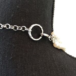 Fashion jewelry three strand faux Pearl and Beaded necklace with silver tone clasp and extender chain.