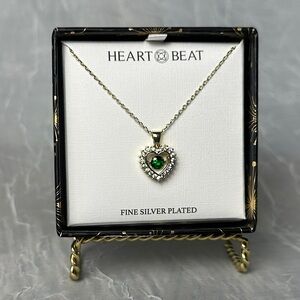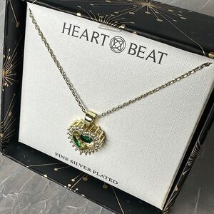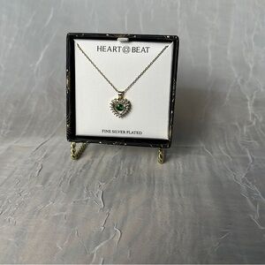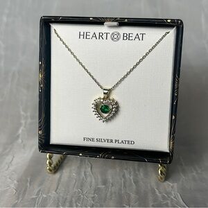 3/$20 💥 Gold Plated Heartbeat Emerald Stone Necklace Heart Shaped Pendent