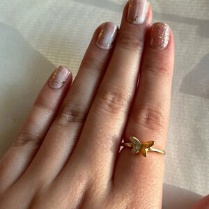 3/$20 Gold Tone Hoop Butterfly Abstract Designed Circle Ring Size 6/7