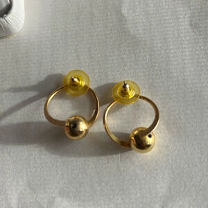 3/$20 Gold Tone Hoop Smooth Beaded Drop Stud Earrings Pierced