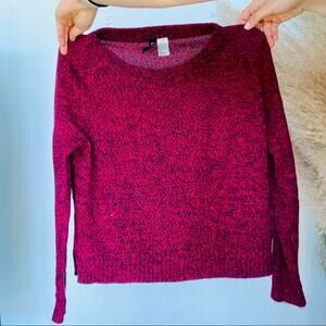 3/$20 H&M DIVIDED Red Blue Marled Knit Cropped Crop Chunky Pullover Cozy Sweater