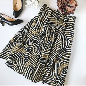 Skirt does not have a size tag. It appears to be handmade. Has belt loops. Also has a button at the top and a zipper. Please see measurement for fit.