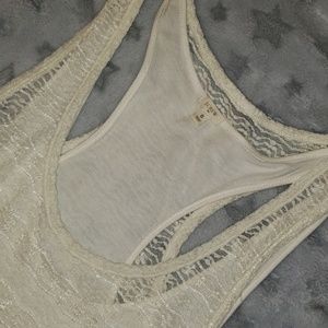 This racerback dress is off white and has a lace overlay (front and back) and its fully lined.