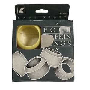 3/$20 Kane Kraft VTG New In Box NOS Yellow Colored Set Of 4 Plastic Napkin Rings