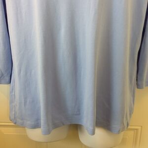 (3/$20) Kim Rogers light blue 3/4 sleeve shirt with graphic front and sequins