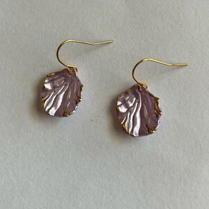 3/$20 Lilac Purple Gold Tone Faux Sea Shell Ocean Beach Dandle Earrings