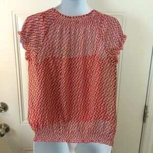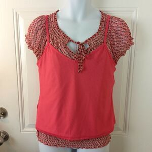 Liz Claiborne Coral printed short sleeve blouse, with attached tank top.