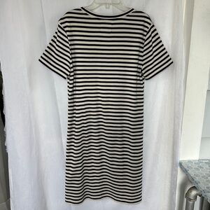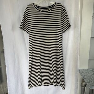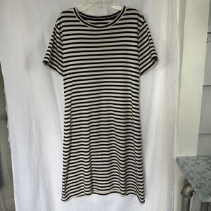 3/$20 💥 Lou & Grey T-Shirt Dress Short Sleeve Cream & Navy Stripe Print Cotton