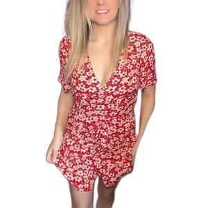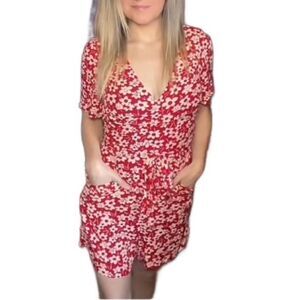 3/$20 Madewell Red Mini Floral Romper w/Pockets & Wrap Top (Size: 2)