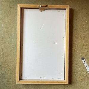 Watercolor Apple print with matte and frame. Small flaw on the frame, which is not really a flaw, just part of the wood. This is absolutely adorable, and contemporary wall decor. Approximate measurements shown in photos.