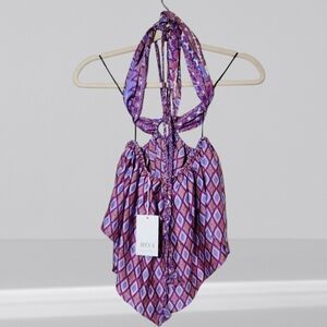 New with tags MISA 'Violeta' Geometric-print Halter Top