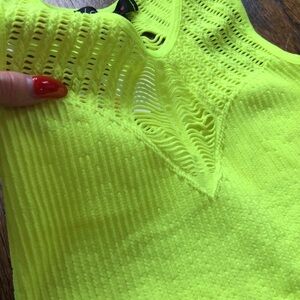 3/$20 Neon Yellow Cut-Out Stretch Ribbed Crop-Top