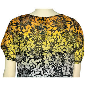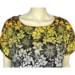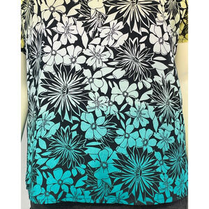 3/$20 New Directions Sz M Pullover Top Colorful Yellow Blue Ombre Floral Chiffon