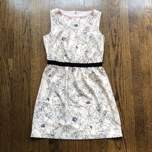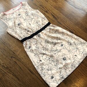 3/$20 Nude Cream Peach Abstract Drawing Floral Crew Neck Sleeveless Ribbon Dress