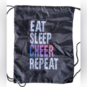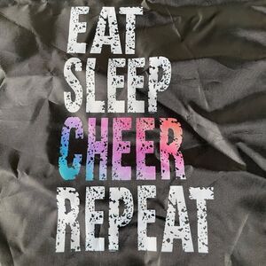 If you’re a cheerleader, or you know someone who loves to cheer, then this bag is for you! Nylon and very lightweight with the words, “Eat Sleep Cheer Repeat.” This bag has never been used. Perfect to carry all of your cheer essentials for everyday use or competitions.