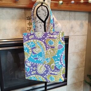 Old Navy Colorful Bag! Adorable bag to take to the beach or shopping! Sequence sewn in here and there on front side. Zipper pocket on the inside. Previously used, normal wear, good condition!