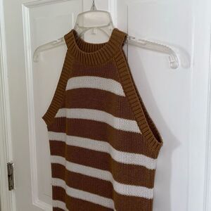 Old Navy cotton blend sleeveless knit sweater with halter neckline and striped pattern in “bourbon” brown and white pattern. In excellent condition!