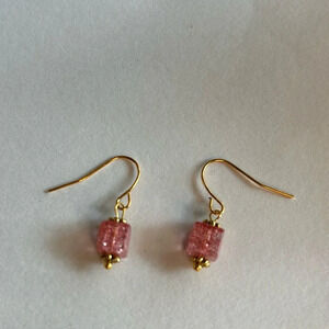 3/$20 Pink Red Square Crystal Ornate Gold Plated Dangling Drop Earrings