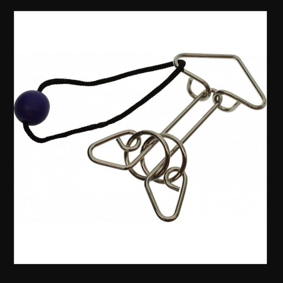 Puzzle Master Cupid's Dart Metal Brainteaser Puzzle - Level 9 Gruelling -- Don’t let the cute name and design fool you. This can be a really tough challenge. Made with 3mm wire and nickel plated, this puzzle can withstand almost anything, even frustration. Can you find a way to remove the string and then put it back as it were? The two rings can’t move much around, but the top of the arrow slides freely up and down. Take advantage of these characteristics to successfully solve it. The Cupid’s Dart is one of many Wire Puzzles found in our PuzzleMaster selection.