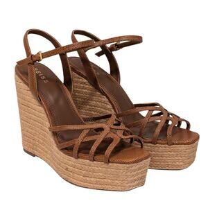 $320 Reiss Elle Espadrille Platform Wedge Sandals Women's Tan size US9.5 EU40