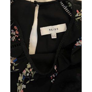$320 Reiss UK 14 US 10 Roma Mini Dress Blouson Black Watercolor Floral Pink