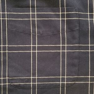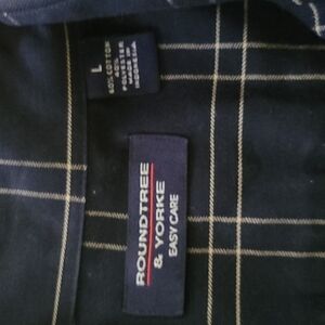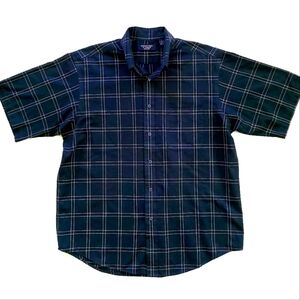 Navy Blue square pattern Roundtree & Yorke short sleeve button down dress shirt. Size Large. 60% Cotton, 40% Polyester. In excellent condition.