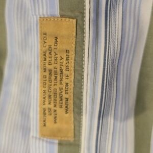 Blue and Olive Green Roundtree & Yorke Gold Label long sleeve button-up dress shirt. Size Large. Some wear around cuffs, in excellent condition otherwise.