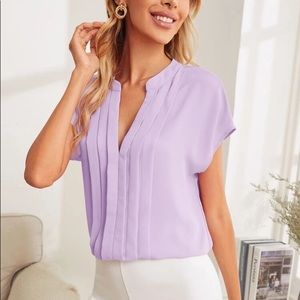 3/$20 SHEIN Notch Neck Fold Pleated Top- lilac